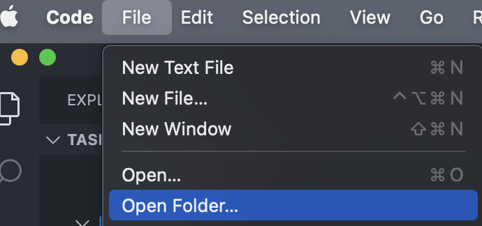 Go to File > Open Folder and find the location where you cloned TASHelix, and open that folder.